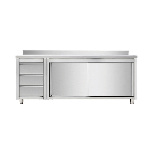 Arbejdsskab med skydelåger og skuffesektion venstre, med opstander, rustfrit stål - 1600 x 700 x 850