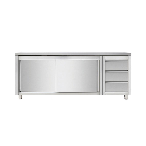 Arbejdsskab med skydelåger og skuffeblok til højre, rustfrit stål - 1600 x 700 x 850