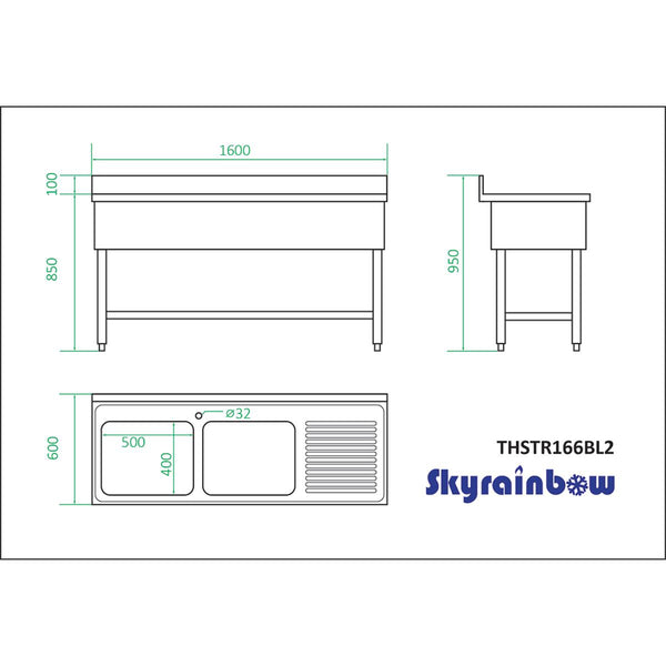 XLGastro vask 2 kumme venstre, rustfrit stål - 1600 x 600 x 850