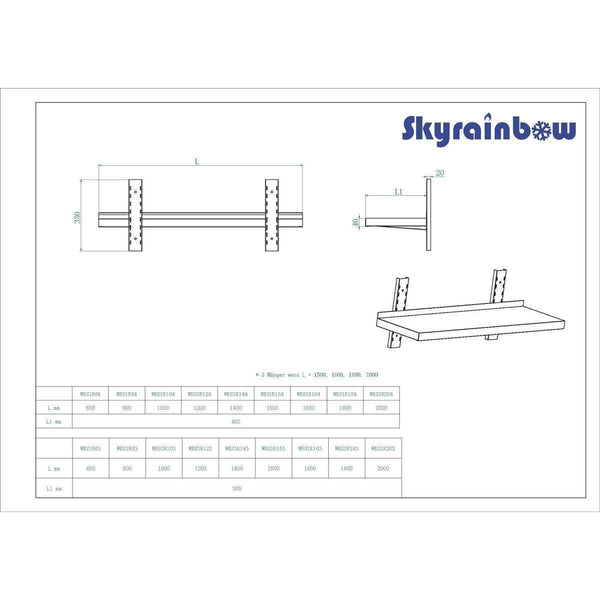Væghylde i rustfrit stål forstærket, 1 hylde, 200x40